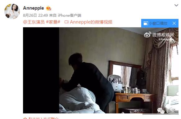 王东妻子 Annepple 突然在微博发了自己被家暴的视频。