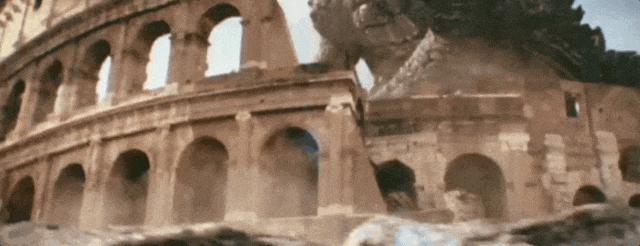 哥斯拉来到陆地不走了,它霸占了位于意大利的古罗马斗兽场,把这个圆圆的大型建筑,当成了自己的窝。