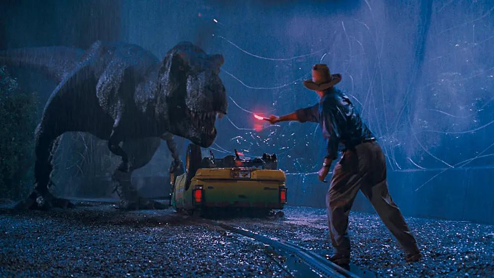 同类型的佼佼者,斯皮尔伯格导演的1993 年版《侏罗纪公园》,就在满足恐龙大战视觉奇观与高效叙事的同时,也同时具有强劲的内核。