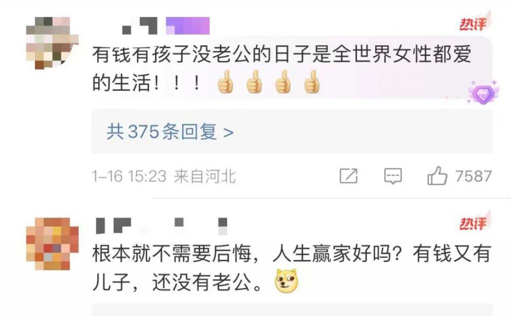 在梁洛施如今又一次在复出时提起李泽楷的新闻下,热评第一条是:" 有钱有孩子没老公的日子,是全世界女性都爱的生活。"