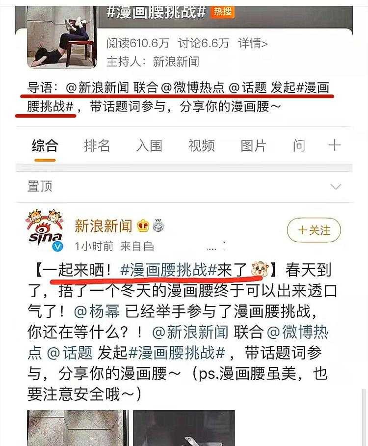 从最早的热搜标签来看,杨幂并非“漫画腰挑战”这个话题的发起者。只不过因为明星号召力,让她被置于了风暴中心。