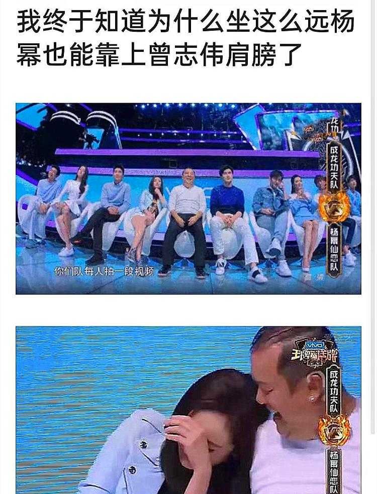 明明跟曾志伟之间有一定的距离,却还是靠上了曾志伟肩膀;