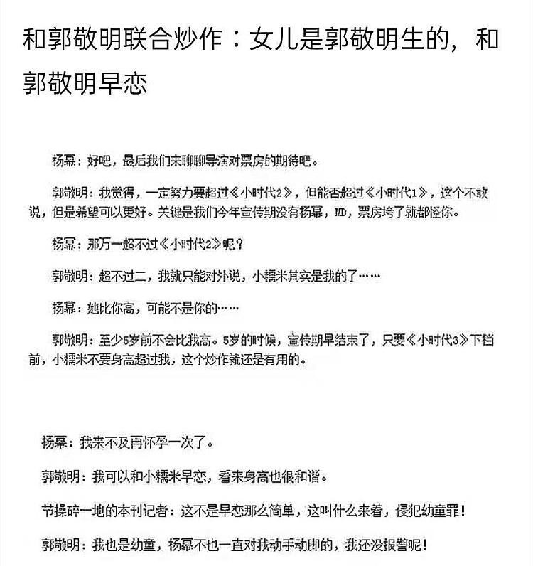 宣传《小时代3》时,郭敬明跟杨幂一来一往,多次拿小糯米做话题,尺度大到让采访记者“节操碎一地”。