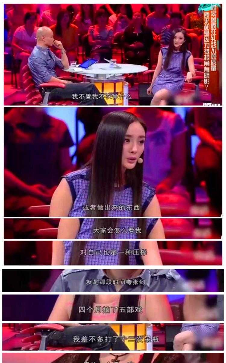 因为曾有过被换角的经历,杨幂开始疯狂接戏。最多时,她一年拍了11部戏,累到每个月打一次点滴。