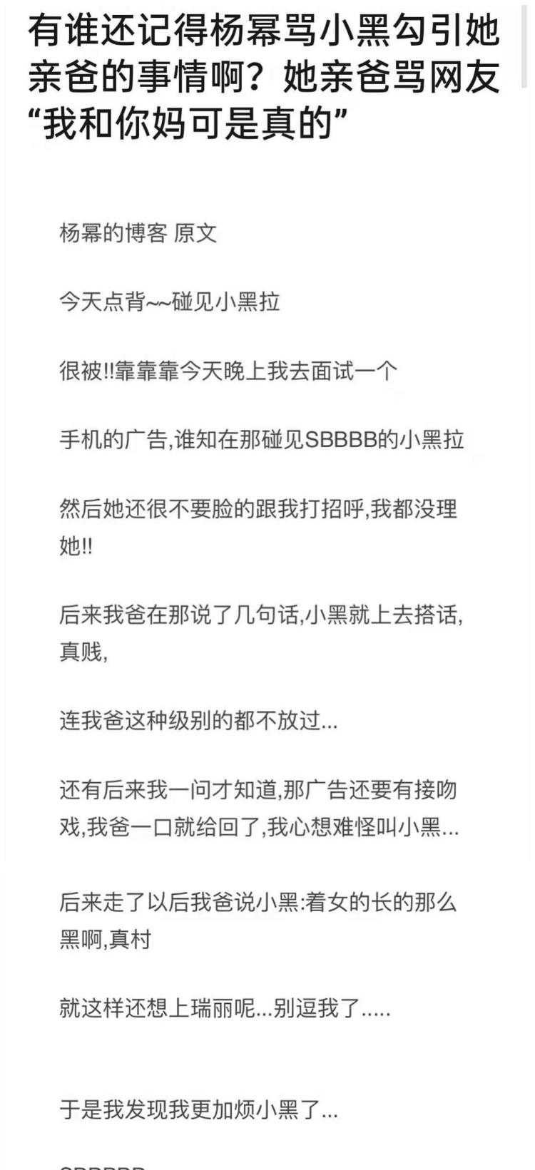 杨幂曾经做过杂志平面模特,网友所说的“造谣小黑”,便是她早期发布的一篇DISS同事的文。文中所说的事真假两说,但遣词用句真的很败好感。