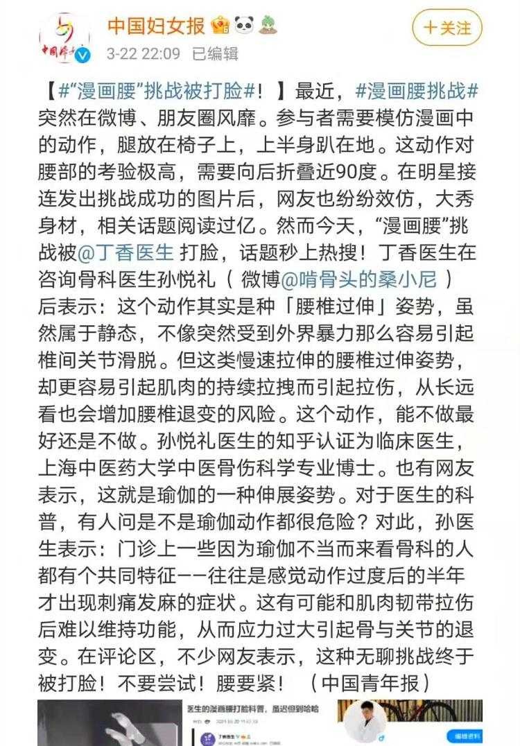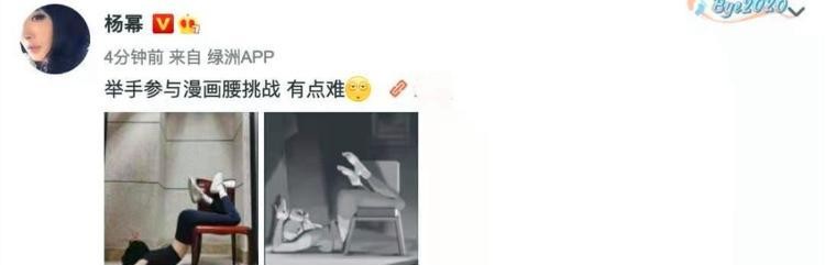 3月22日,杨幂发文称“举手参与漫画腰挑战”,并配了漫画原图和自己的模仿图。但就是这一句话、两张图,引来一番网络乱战。