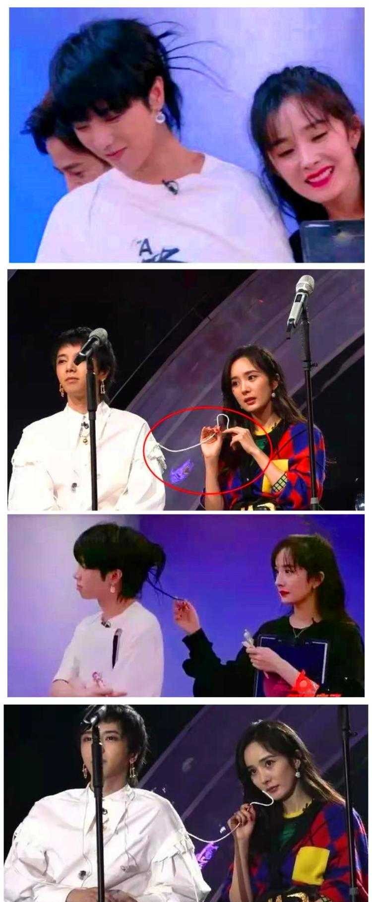 比如跟华晨宇同台时,杨幂不是将头靠向华晨宇的位置,就是玩华晨宇的耳机线、小辫子;