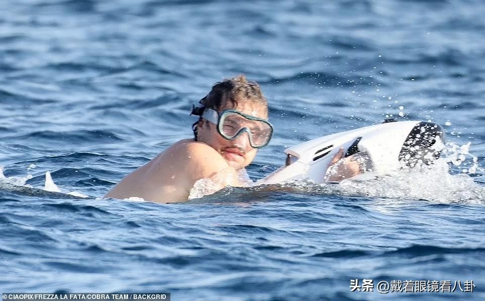 隔天,小李子换了一条黑色的短裤,脸上依然是胡子拉碴。不过,游艇度假也不全是开心的事情,小李子在海里嬉戏的时候,就被水母蜇伤了大腿根部,导致皮肤红了一大片。