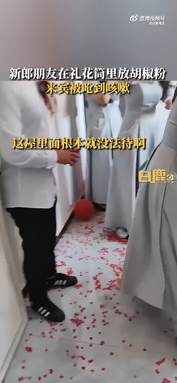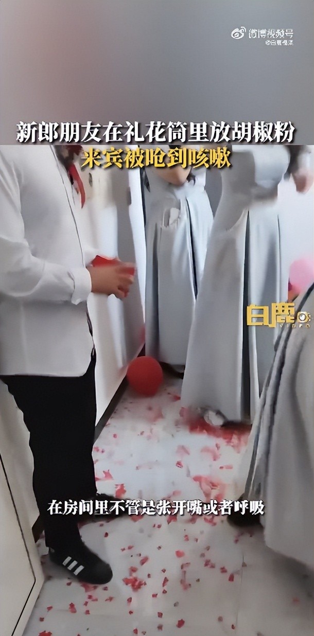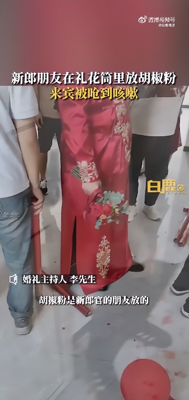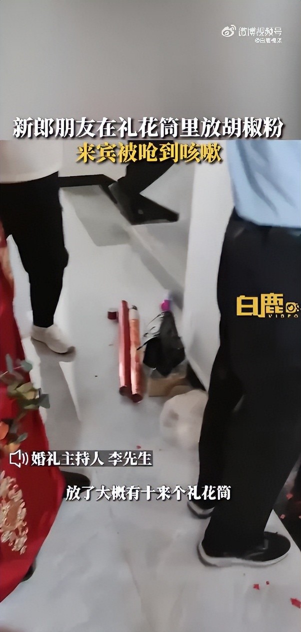 新郎朋友在10来个礼花筒里放胡椒粉,惹宾客不停咳嗽,婚礼主持人回应:特别呛