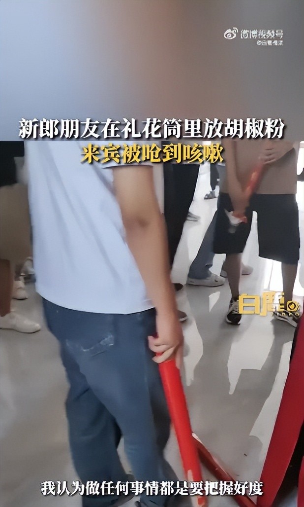 新郎朋友在10来个礼花筒里放胡椒粉,惹宾客不停咳嗽,婚礼主持人回应:特别呛人,觉得做任何事都要把握好度