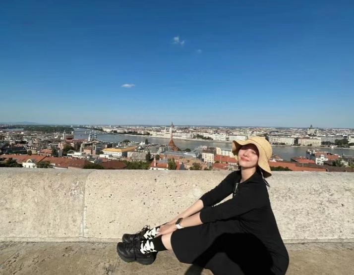 刘园媛是一个懂得享受的人,带着女儿参加比赛是主要任务,可也不忘到各个景点拍照打卡,每一张打卡照片,都是像大片。在国外因为没人认识她,所以随便穿一件黑色的套装戴一个遮阳帽,摆着各种POSS,就是一张美照。