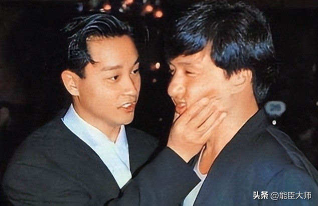还有成龙在外人面前,总是一副大哥风范,只有张国荣最喜欢在媒体面前捏成龙的脸,有次成龙想报复性的捏回来,张国荣就跑的老远,嘴里还说着我是靓仔你不能毁我形象。估计成龙心里哭笑不得,这是说我丑,那我走 ?