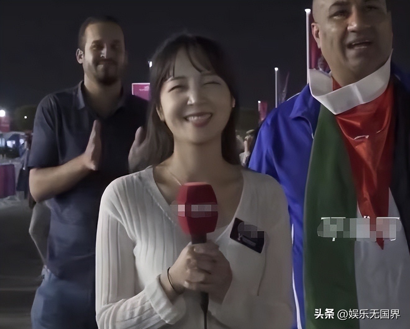 当地时间2022年11月20日,郑伊秀在卡塔尔直播报道世界杯时,遭到外国球迷粗鲁对待,但她不受干扰依旧敬业的微笑完成采访,获得韩国网友纷纷点赞。