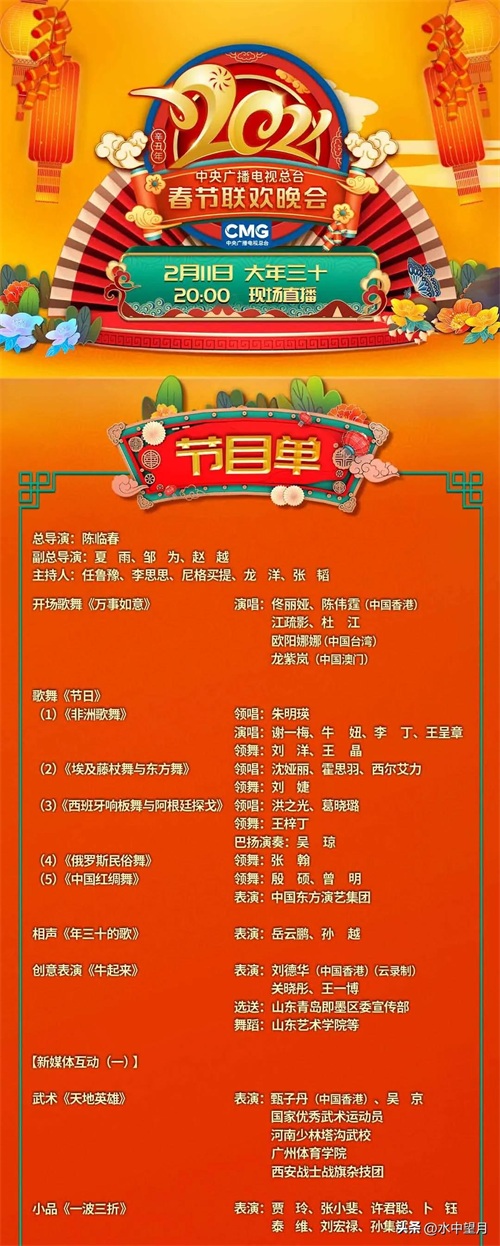 主持人:朱军、董卿、康辉、朱迅、尼格买提·热合曼;