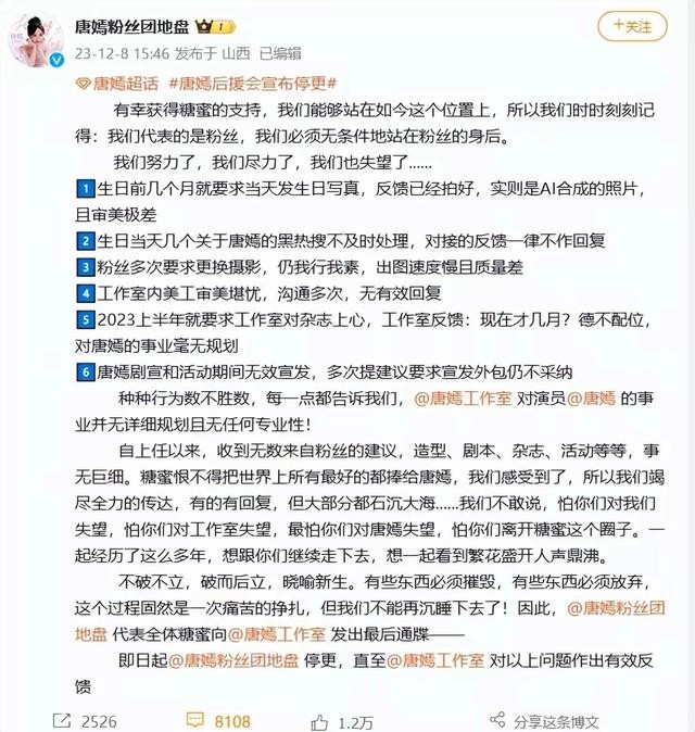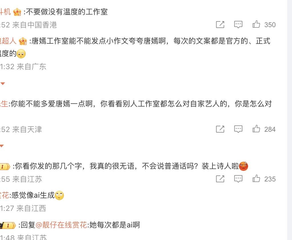 唐嫣的粉丝早就对工作室不满了,这不,又在炮轰工作室了。