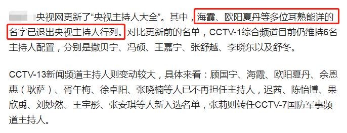 央视主持人名单更新,有些熟悉的面孔消失了,海霞、欧阳夏丹退出
