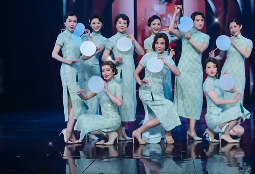 节目上,张蕾一袭绿色旗袍现身,高开衩的裙摆露出一双大长腿,彰显出火辣身材,举手投足间又美又甜。