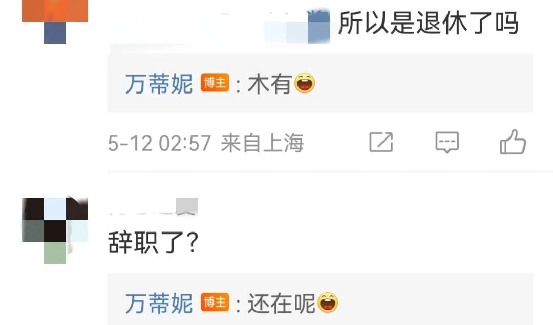 对于万蒂妮这突然的回忆和感慨,网友一下子也没搞明白,有网友就问怎么突然就回忆杀了?这是要退休还是辞职呀?