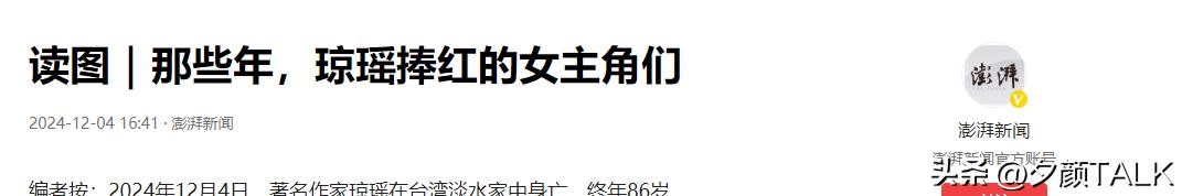 [1]官方媒体澎湃新闻 2024年12月04日发布 《那些年,琼瑶捧红的女主角们》