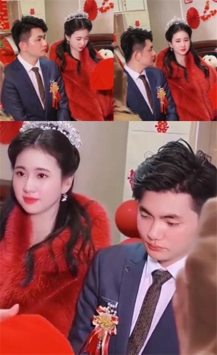 网上有人晒出了一个结婚当天的视频,新娘子戴着水晶的皇冠,穿着红皮草,头发也跟《去有风的地方》中许红豆一样,是长卷发。坐在她旁边的,是穿着一身深蓝色西装的新郎官,留着三七分的头发,五官还算是力挺。