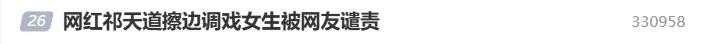 近日,网红祁天道在三亚进行户外直播时,为了博取眼球和取悦粉丝,做出了多次不当行为,擦边调戏女生,引起网友谴责。