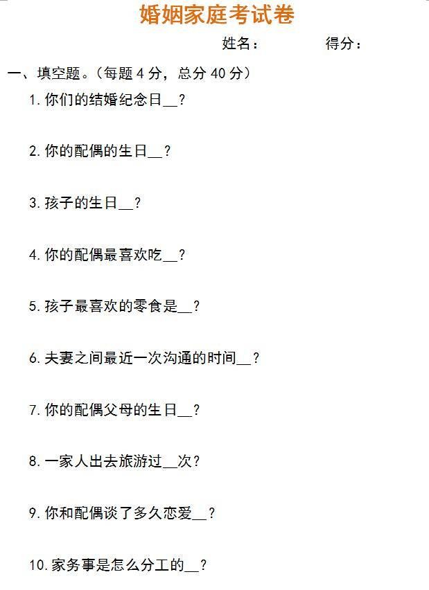 “离婚试卷”火了!80后夫妻做完,女100分男0分!网友炸锅了