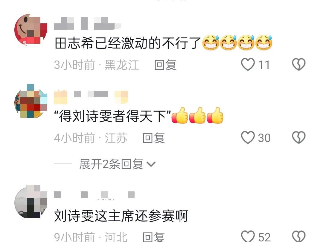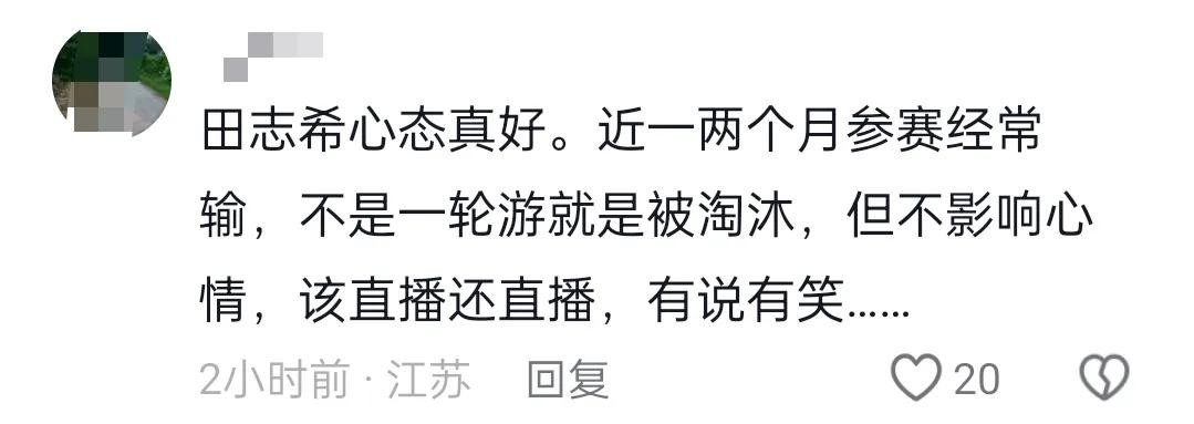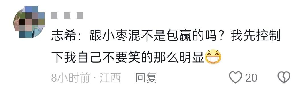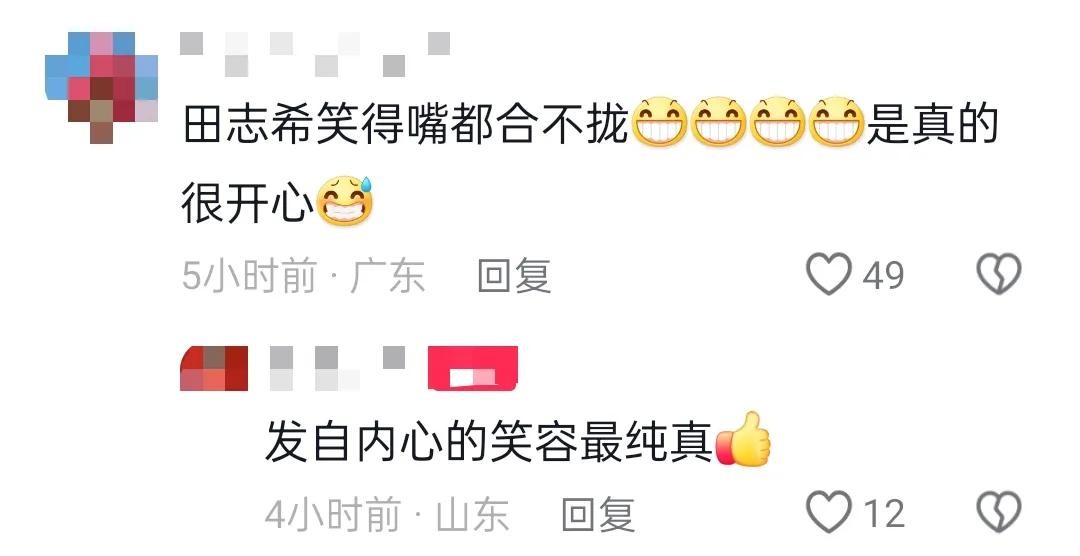 最幸福当属田志希了,可以和偶像搭档打比赛,田志希化身“傻白甜”,比赛从开始到比赛结束一直乐呵呵地傻笑。