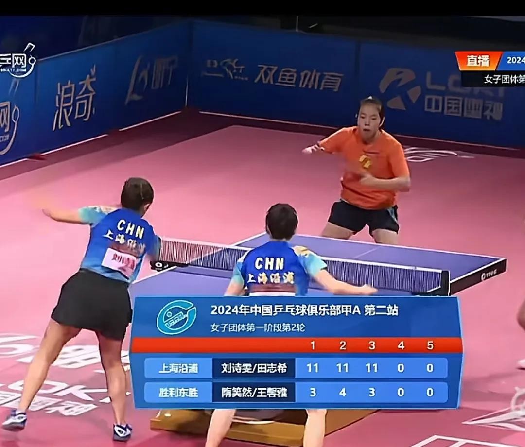 在刚结束的甲A联赛第二轮比赛中,刘诗雯/田志希组合以3:0轻松战胜了东胜胜利队,比分分别为11:3/11:4/11:3。