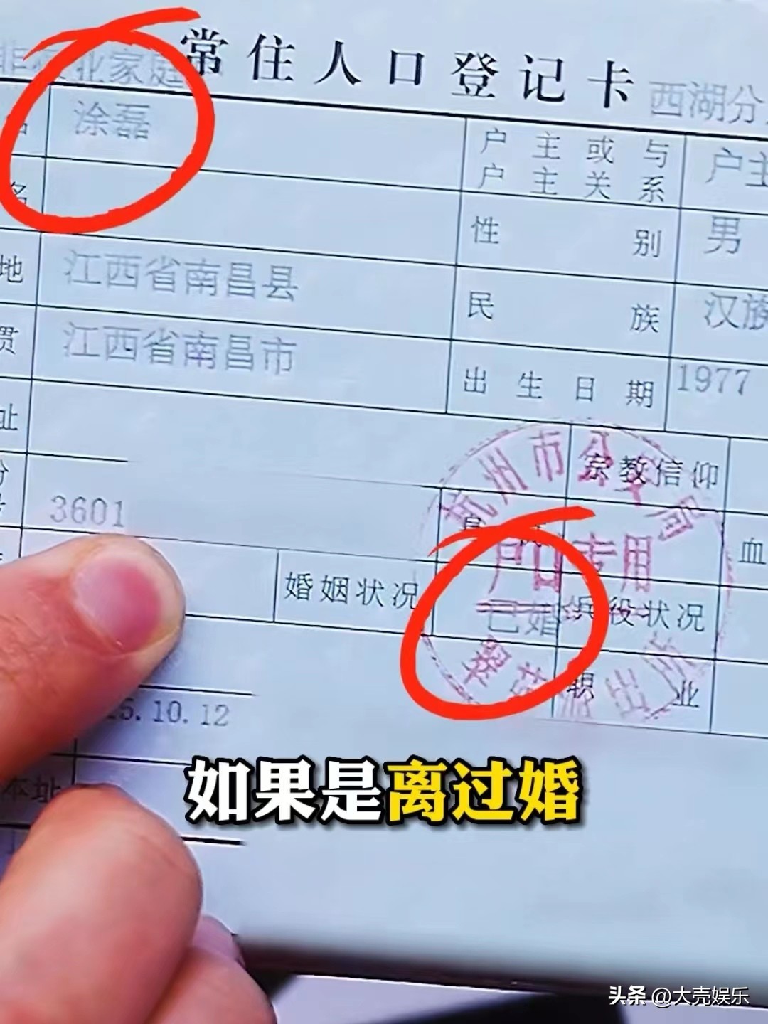 45岁涂磊被曝离婚三次,本人晒结婚证和户口本自证清白