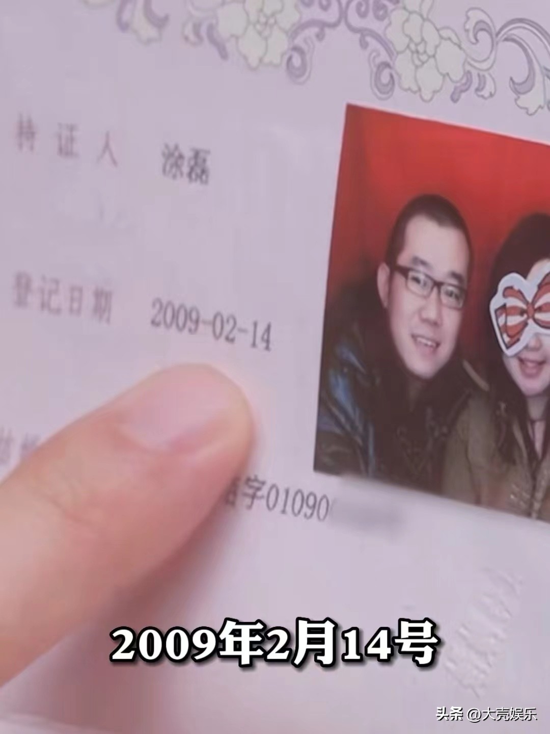 通过结婚证来看,涂磊和妻子于2009年2月14日领证,如今已经过去了十四年。