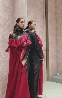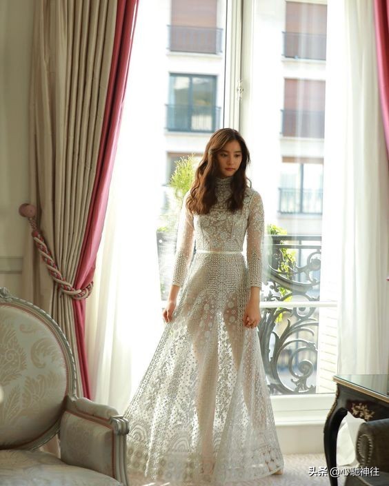 一袭白色镂空礼服裙的新木优子,高贵典雅,大大的裙摆,尽显优雅公主范。宛如漂亮的仙女下落凡间,散发出来的气质让人向往。