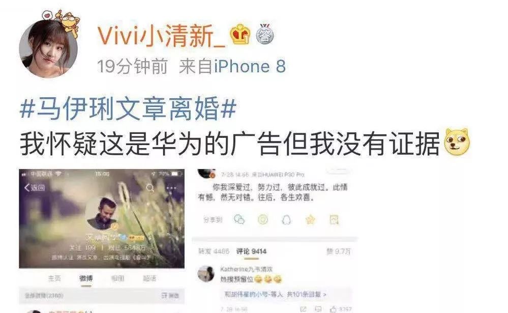 有眼尖的网友关注点比较另类,发现两人发布微博用的都是华为手机,由此发文评论说: