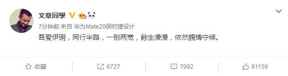 2019年7月28日下午,文章通过微博宣布,与妻子马伊琍离婚。随后,马伊琍也宣布了离婚的消息。