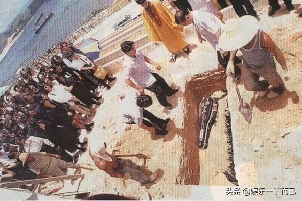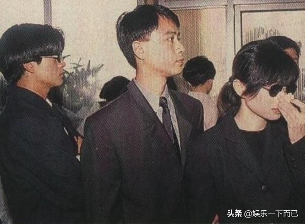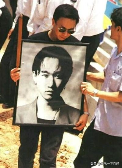 图为葬礼途中,beyond乐队成员黄家强手捧遗像,黄家强另一个身份是黄家驹的亲弟弟。