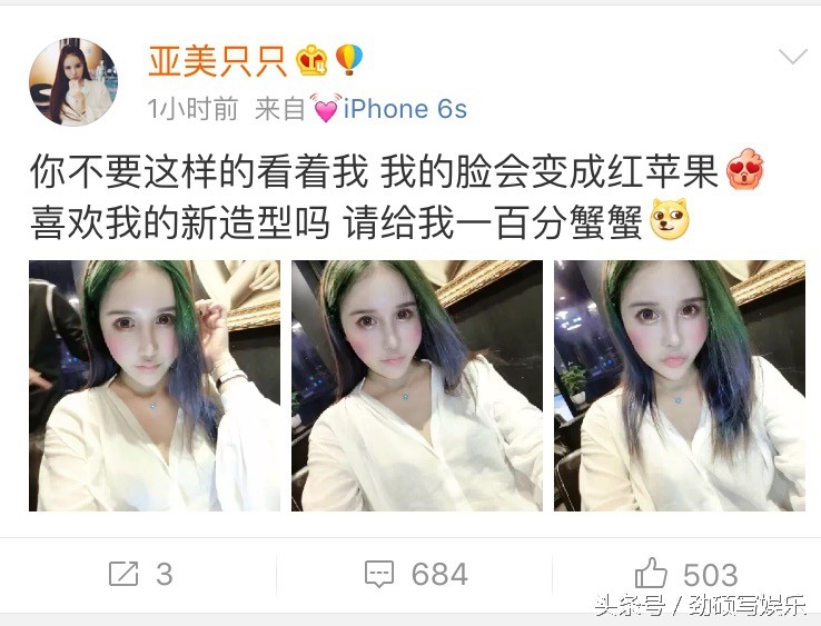 刘梓晨女朋友亚美只只真是丑人多作怪,染了个红绿,红紫头发,面色潮红。