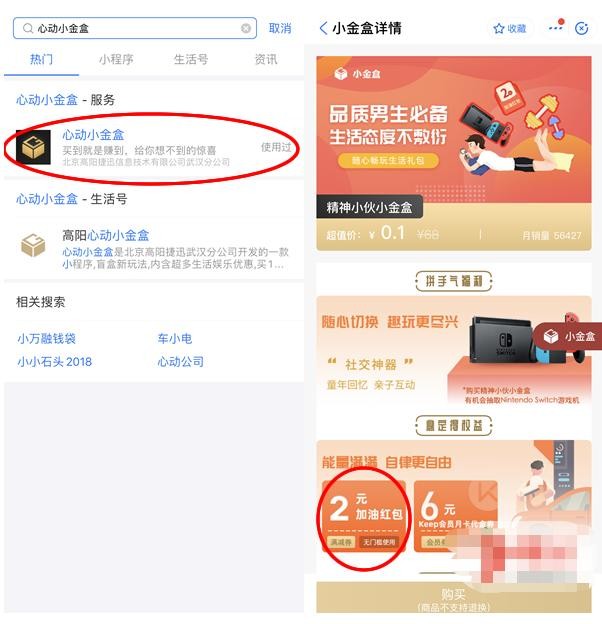 2、领取后返回支付宝App首页→搜索"心动小金盒"→选择"精神小伙小金盒"花0.1元购买,必得权益含2元加油红包。
