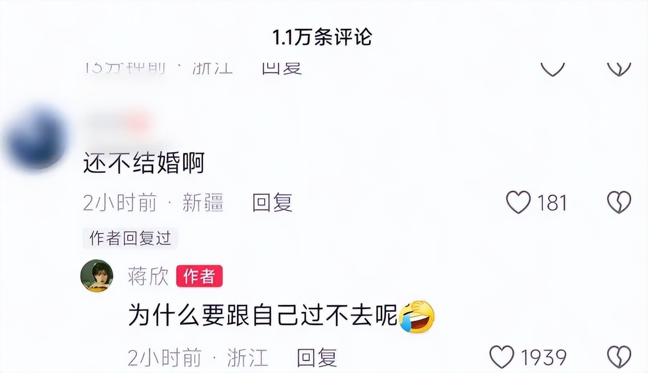 其实,在蒋欣给网友的评论中,早已给出自己不婚的原因。