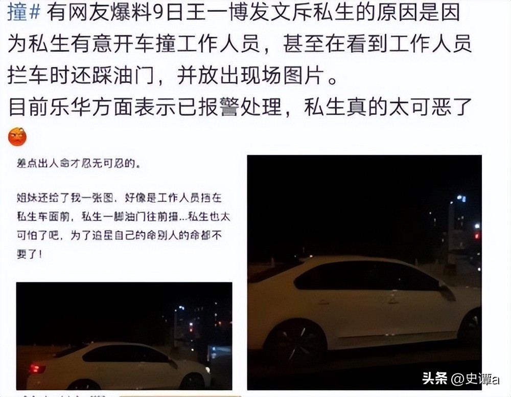 2020年,王一博遭遇粉丝疯狂追车,当时王一博的工作人员出来阻拦私生粉,这些疯狂的私生粉甚至不假思索的猛踩油门,差点造成人员伤亡。