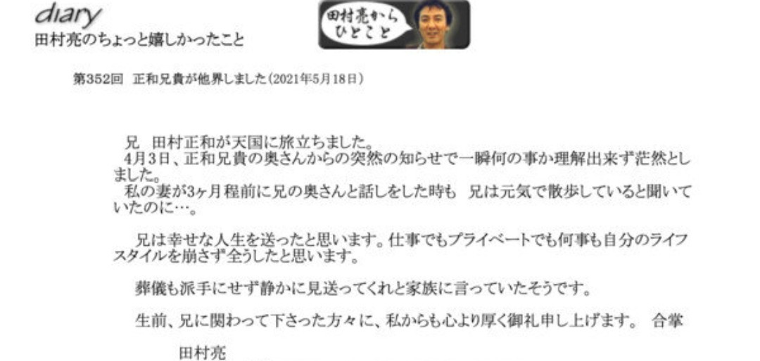 田村正和的弟弟在得知哥哥的死讯的时候同样表现得很诧异,他表示哥哥不是好好的吗?从田村正和弟弟的反应不难看出田村正和离世比较突然,连家人都觉得猝不及防,难以接受,更遑论是网友们呢。