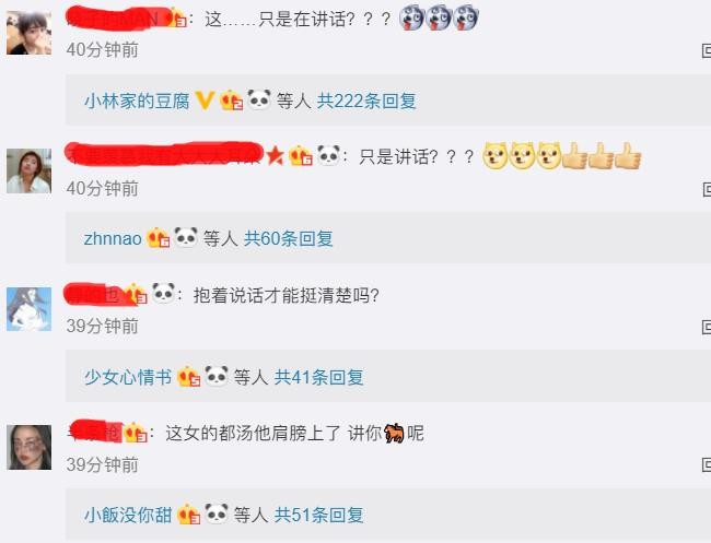 网友对这样的公关貌似也不太买账。有人说“要抱着才能说清楚吗?”也有人直言“这女的都靠他肩膀上了”......