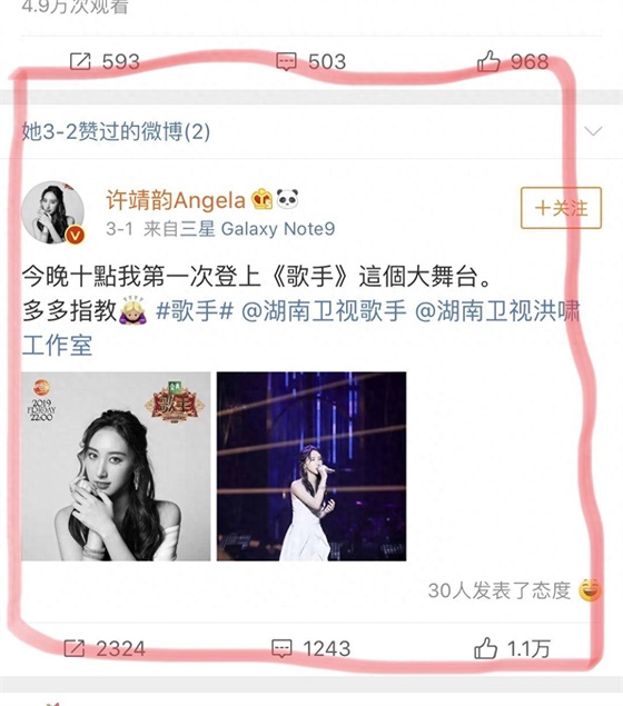 第二期录制后,怕是就知道许靖韵成功了,便立马倒戈开始点赞许靖韵微博,现在发的微博也是先艾特许靖韵,之前微博都是先艾特毕书尽的。冯青小姐姐,势利眼别太明显哦!!!