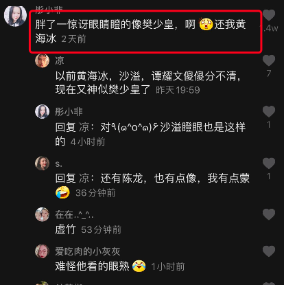 虽然大家还是能看出来这是黄海冰,但是动态图片却像极了演员樊少皇,尤其是在做夸张表情的时候,他的眼睛,鼻子以及嘴巴都像极了樊少皇!
