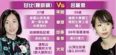 但来看看另一边曾经和甘比争财产失败的吕丽君,人们每每谈论起她来,总要扯上一句 " 身为博士却被一名小娱记全方位碾压,一手好牌打稀烂的人物。"
