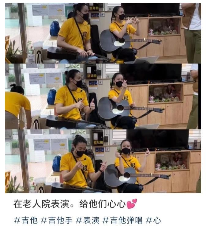 上个月刘秀盈也有去养老院送食物和表演节目,也晒出了不少自己陪伴老人的照片。