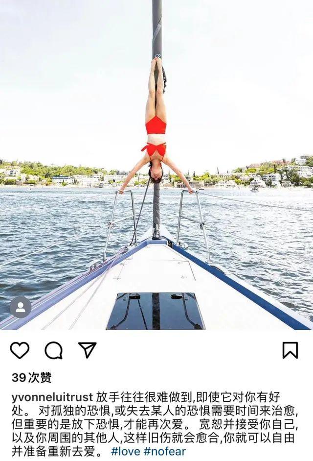 她不满足只在家中、练习室做瑜伽,会突发奇想进行各种挑战、突破,在庭院、海边、山涧去做瑜伽,如今更是把瑜伽的场合搬到了私人游艇上。