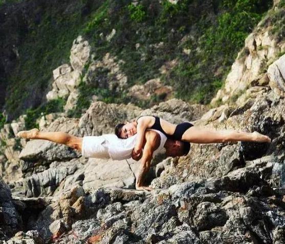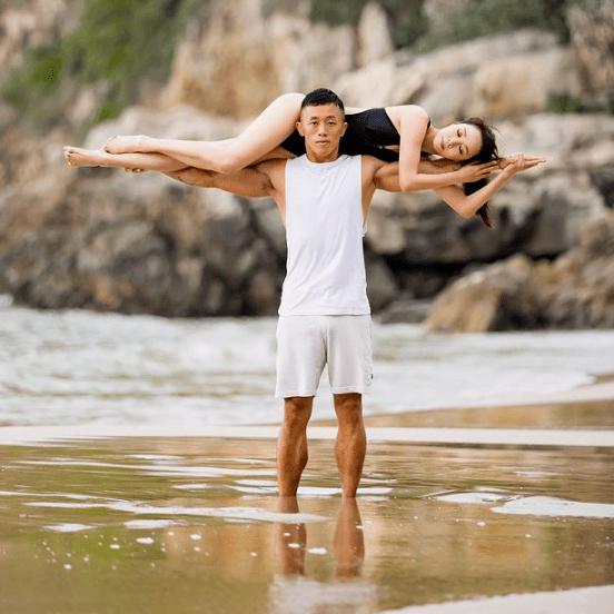 除了单人瑜伽,吕丽君也常常进行男女高难度双人瑜伽展示。