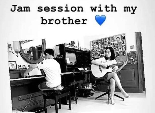 而吕丽君的儿子因为还未成年所以曝光很少,只和姐姐一起合奏时在 ins 上出现过背影。