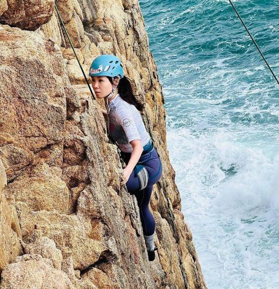除了瑜伽和跑步,很多户外运动都被她拿捏住,比如攀岩。