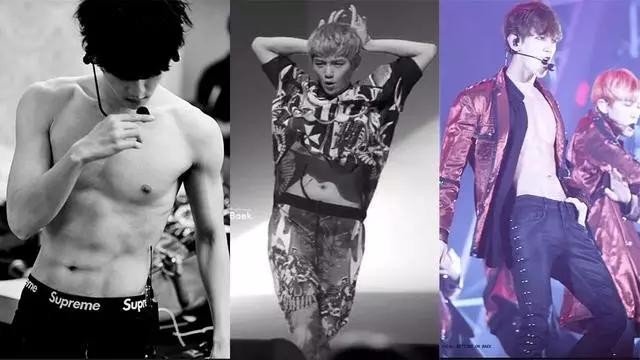 EXO每个成员都拥有名品腹肌,连曾经拥有小肚腩的伯贤,都练出了一身的腹肌,在粉丝面前展露了,但迟迟等不到灿烈的腹肌,终于等到灿烈在演唱会上脱了!有次灿烈在直播节目中,想给大家看时间拿起手机发现锁频是灿烈自己裸上半身的腹肌照啊~