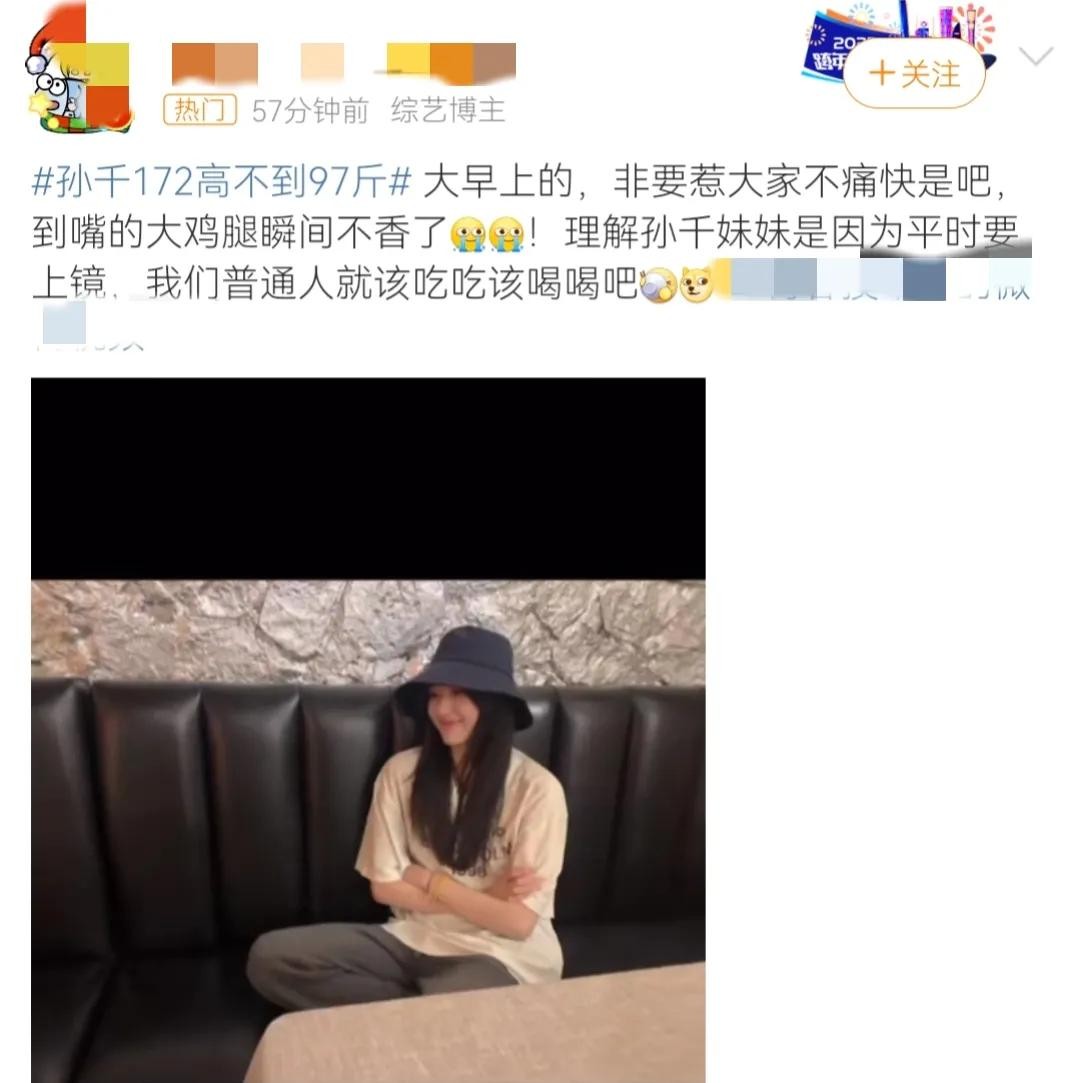 女星孙千晒体重 172不到100斤 过度瘦引发身材焦虑没必要